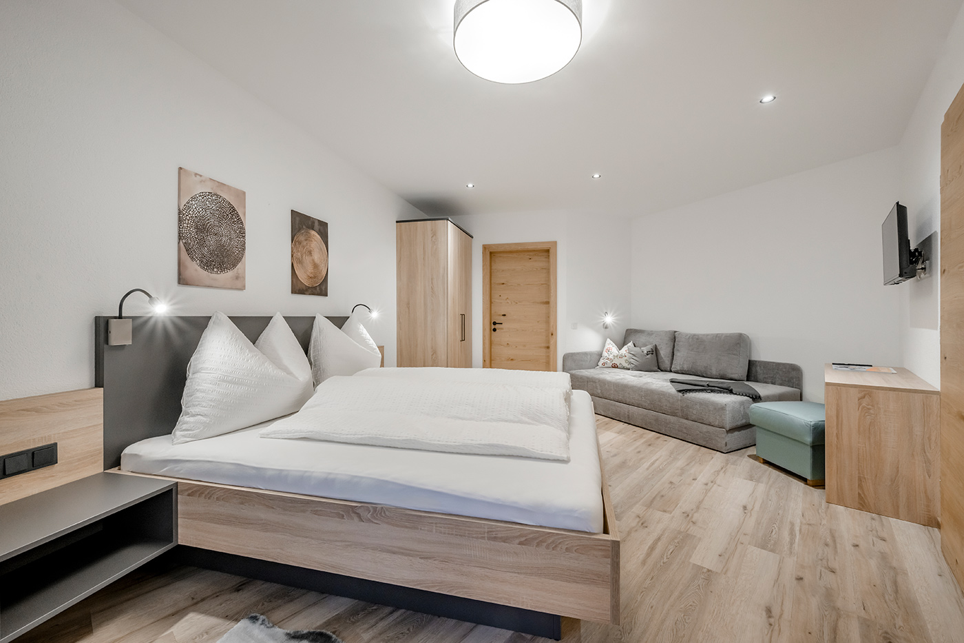 - 2 Schlafzimmer mit jeweils einem Doppelbett (eines davon mit komfortabler Couch als zusätzliche Schlafmöglichkeit)